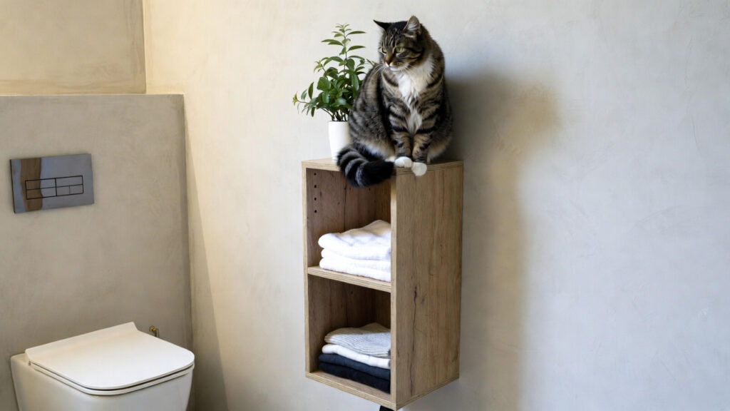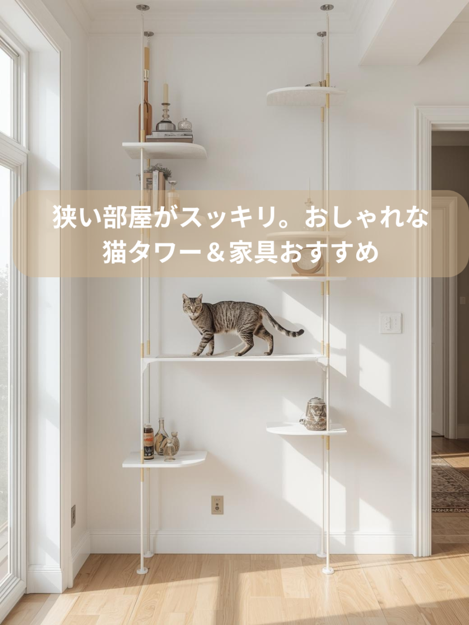 猫タワー単体ではなく「収納棚+ステップ」のように、飼い主の荷物も置ける家具を選ぶと、お部屋が格段に広く見えます。